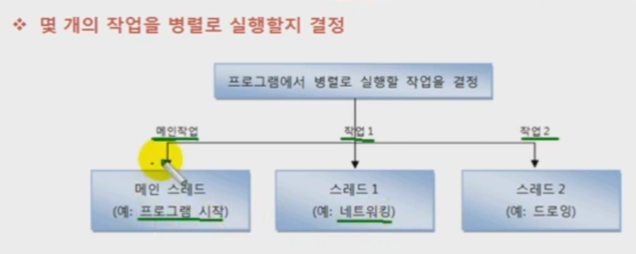 멀티 스레드로 실행하는 애플리케이션을 개발하려면 먼저 몇 개의 작업을 병렬로 실행할지 결정하고 각 작업별로 스레드를 생성해야 한다.