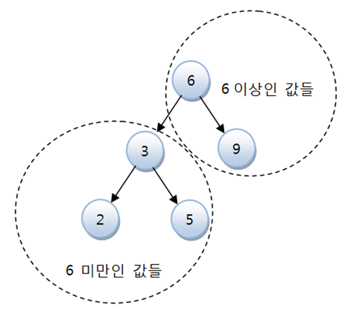 부모 값과 비교해서 낮은 것은 왼쪽 자식 노드에 높은것은 오른쪽 자식 노드에 저장한다.