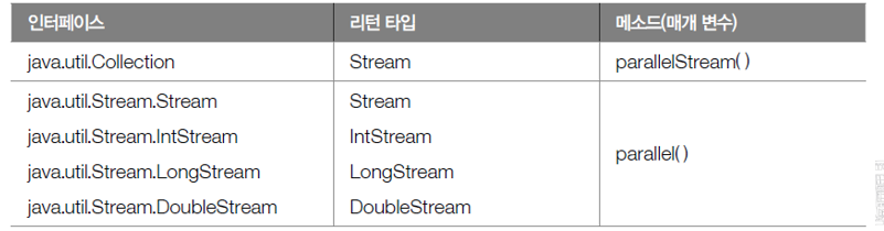 parallelStream() 메소드는 컬렉션으로부터 병렬 스트림을 바로 리턴한다