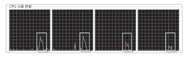 이것은 필자의 컴퓨터가 쿼드코어 CPU를 사용하기 떄문이다.