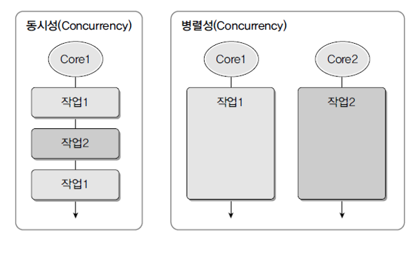병렬성은 멀티 작업을 위해 멀티 코어를 이용해서 동시에 실행하는 성질을 말한다.