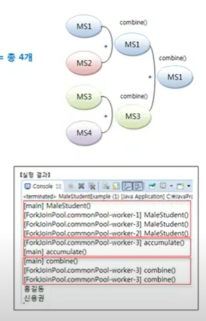 각 스레드는 서브요소를 수집해야 하므로 4개의 MaleStudent 객체를 생성하기 위해 collect() 의 첫 번째 메소드 참조인 MaleStudent::new 를 4번 실행 시킨다