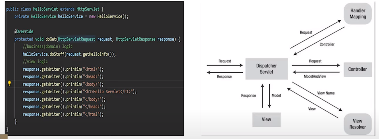 DispathcerServlet 이 FrontController 로서 Request를 받아 알맞는 Servlet(Controller)에 Mapping