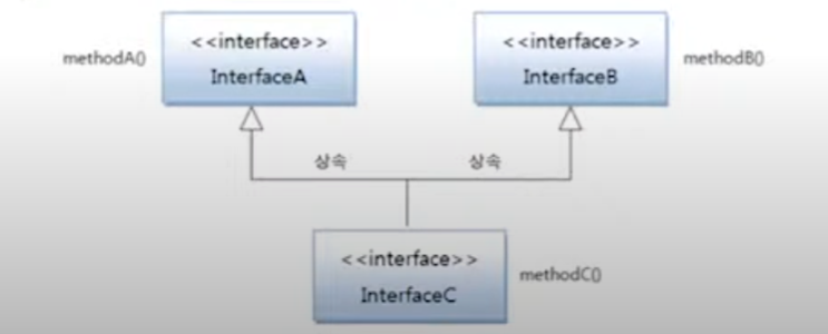 public interface 하위인터페이스 extends 상위인터페이스1, 상위인터페이스2 {...}