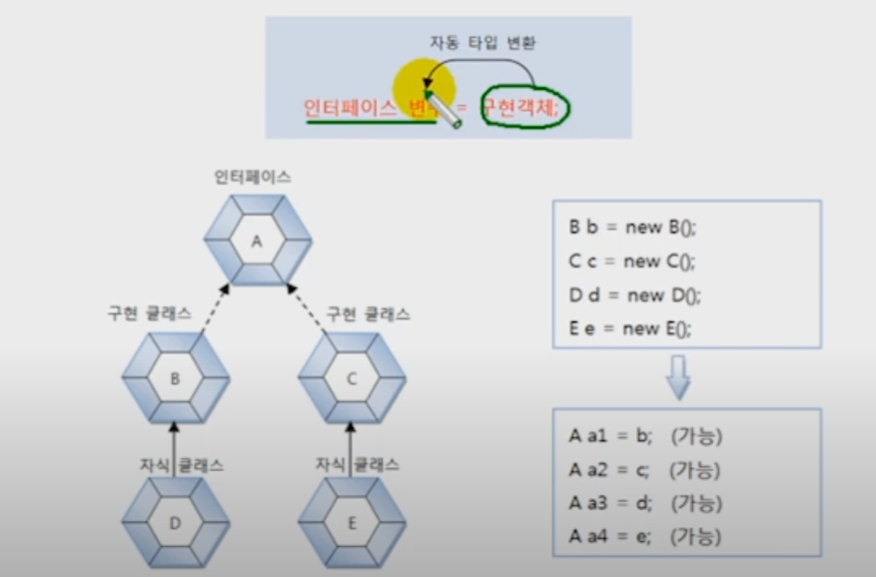 * 인터페이스 구현 클래스를 상속해서 자식 클래스를 만들었다면 자식 객체 역시 인터페이스 타입으로 자동 타입 변환