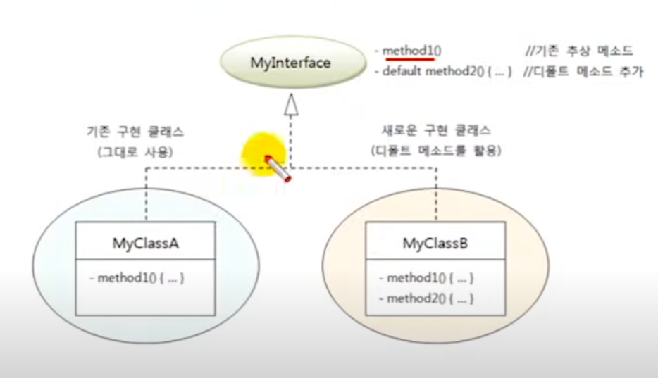 자바 8에서 디폴트 메소드를 허용한 이유 => 기존 인터페이스 확장하여 새로운 기능을 추가